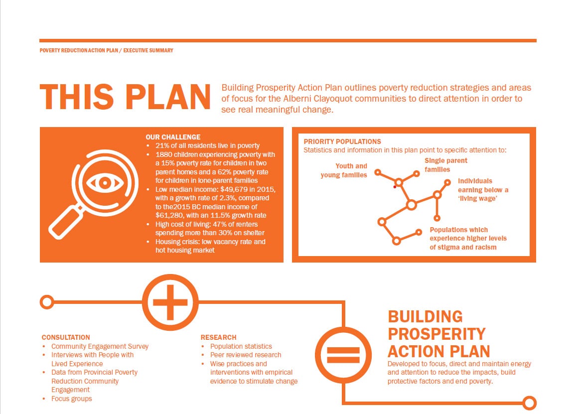 The Building Prosperity in the Alberni Clayoquot – Regional Poverty Reduction Action Plan was completed through a UBCM Grant 2020 – 2021 by the Alberni Clayoquot Health Network and community partners. Check out the whole report HERE.